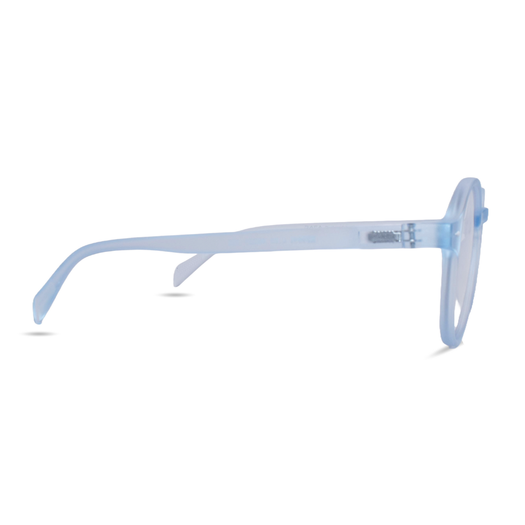 Bring subtle style and everyday comfort to your look with this frosted light blue round eyeglass frame. Designed with a soft translucent finish, this unisex frame gives a clean, modern appearance while maintaining a lightweight feel perfect for all-day wear. The rounded shape offers a gentle, timeless aesthetic that suits a wide variety of face types.