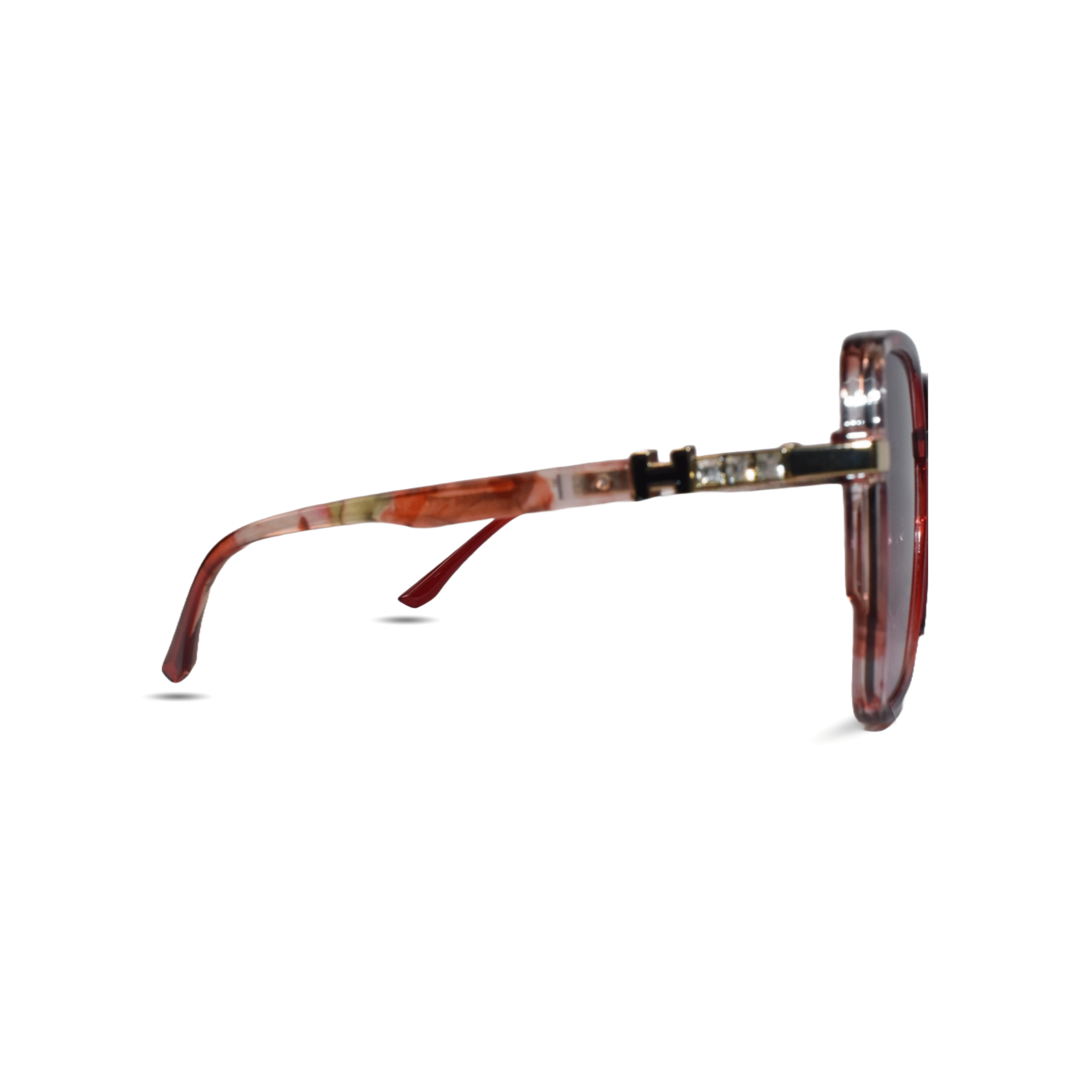 - Gold-tone temples with embedded crystals for added luxury